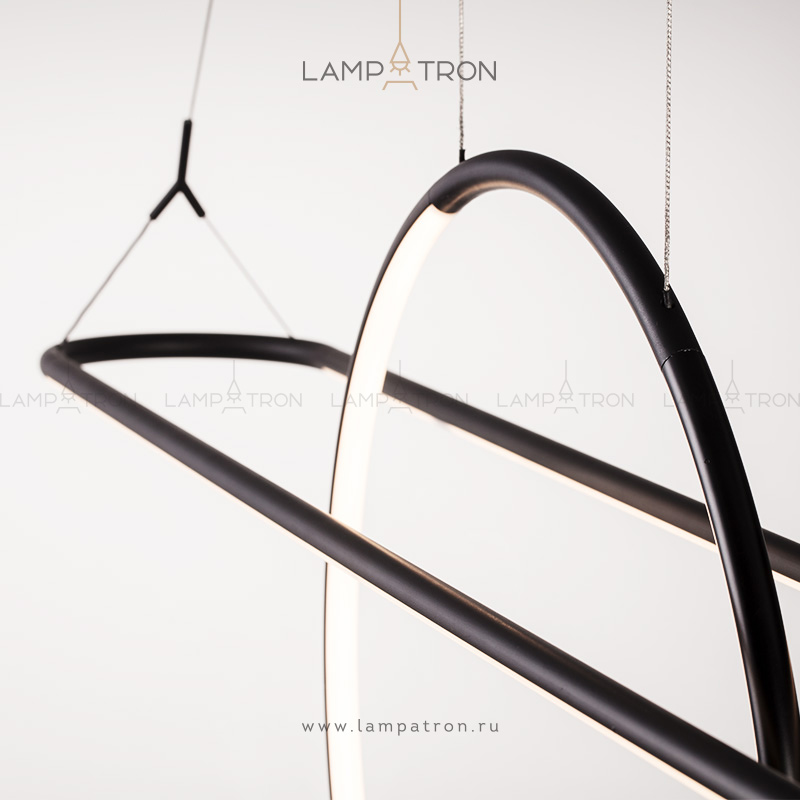 Реечный светильник в виде комбинации кольца и прямоугольной рейки с внутренней LED-подсветкой
