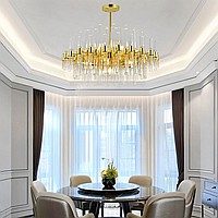 Эта стеклянная люстра DAINA-10 выполнена в стиле постмодерн и станет ярким акцентом в интерьере современной спальни или гостиной в стиле лофт и модерн. Размеры диаметром 60 см и высотой 40 см позволяют создать мягкое, рассеянное освещение, при этом благодаря 10 источникам с цоколем Е14 она обеспечивает равномерный свет, идеально подходящий для уютных вечерних часов или особых мероприятий. Золотой цвет металла и стеклянных элементов добавляют интерьеру нотки роскоши, а её уникальный дизайн с длинными прозрачными стеклянными трубками создает атмосферу легкой динамики и современного шика. Такой светильник легко комбинировать с минималистичными мебелью и металлическими деталями, подчеркнув стильность пространства. Обнови свою комнату с помощью этого изысканного и комфортного светильника — купи его и создавай яркую атмосферу для любого настроения.