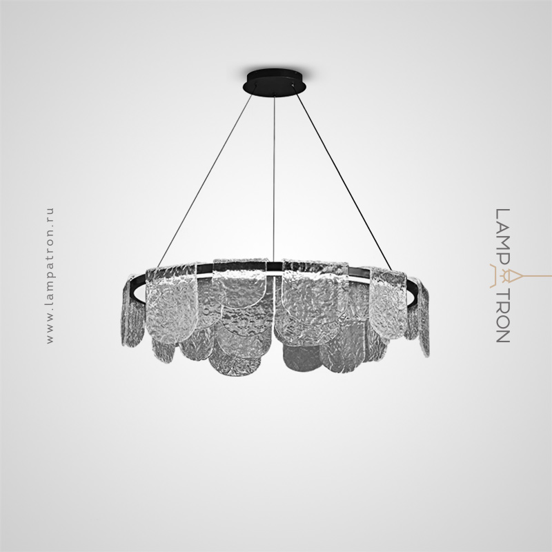 Серия светодиодных люстр с рельефными рассеивателями с эффектом стекающих стеклянных поверхностей