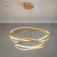 Серия дизайнерских люстр на струнном подвесе с изогнутыми кольцевыми плафонами с внутренней LED-подсветкой