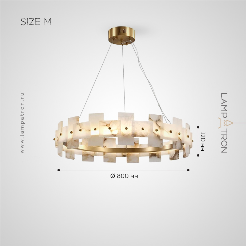 Кольцевая светодиодная люстра с прямоугольными рассеивателями из натурального белого мрамора