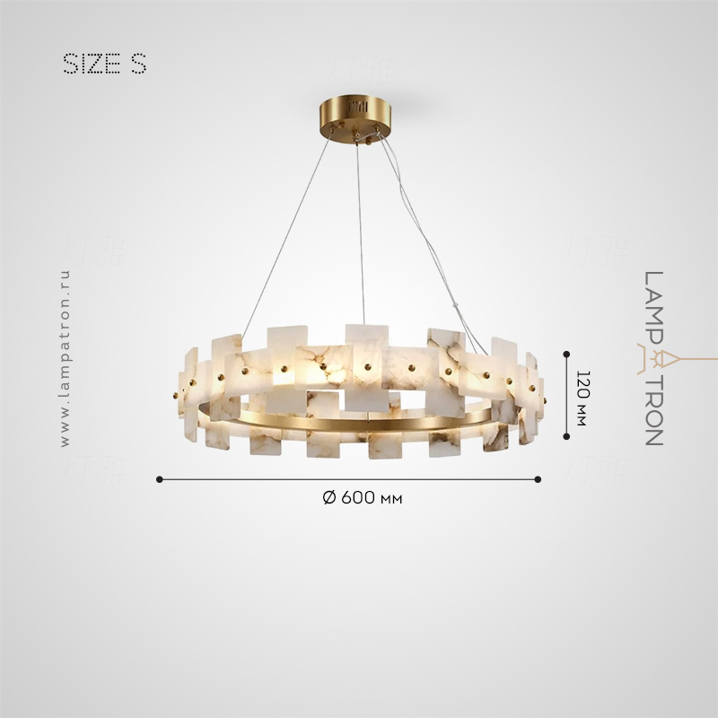 Кольцевая светодиодная люстра с прямоугольными рассеивателями из натурального белого мрамора