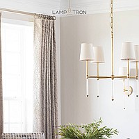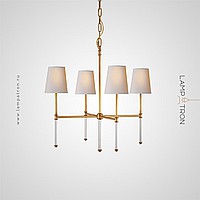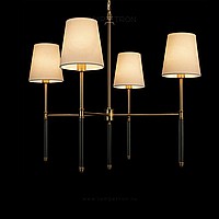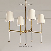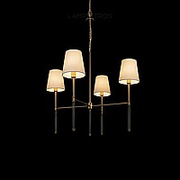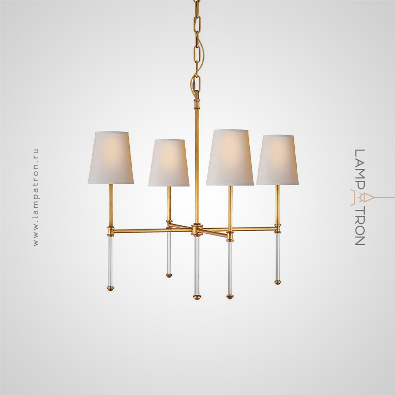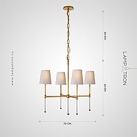 Люстра с коническими текстильными абажурами на сборных стойках из латуни и хрусталя