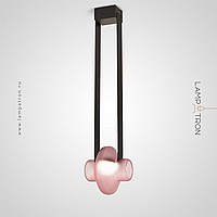 Серия подвесных светодиодных светильников с шаровидным корпусом из цветного стекла на кожаных ремешках