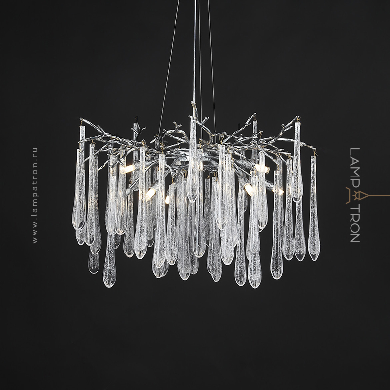 Серия дизайнерских люстр со стеклянными подвесками в виде капель на ветвистом каркасе