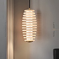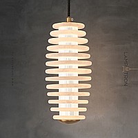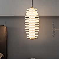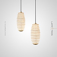Подвесной светильник с цилиндрическим LED источником света внутри корпуса из мраморных дисков
