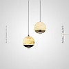 Серия светильников с мраморным рассеивателем внутри стеклянного плафона на ассиметричном подвесе