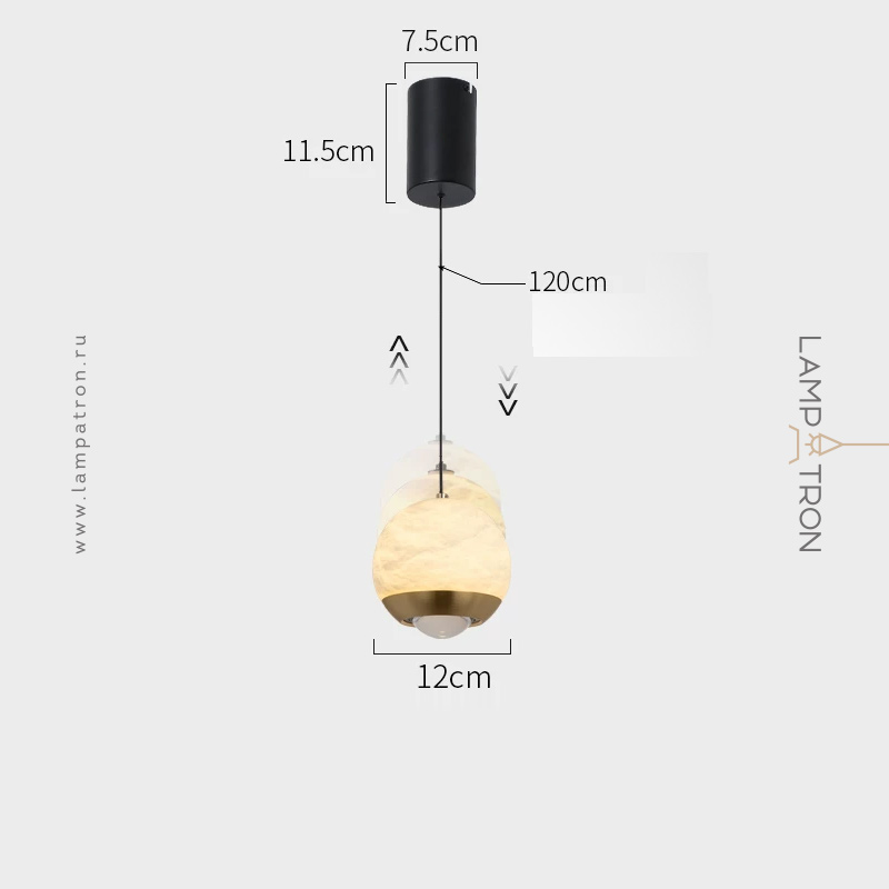 Серия подвесных светильников с шарообразным плафоном из натурального мрамора и направленным линзированным источником света