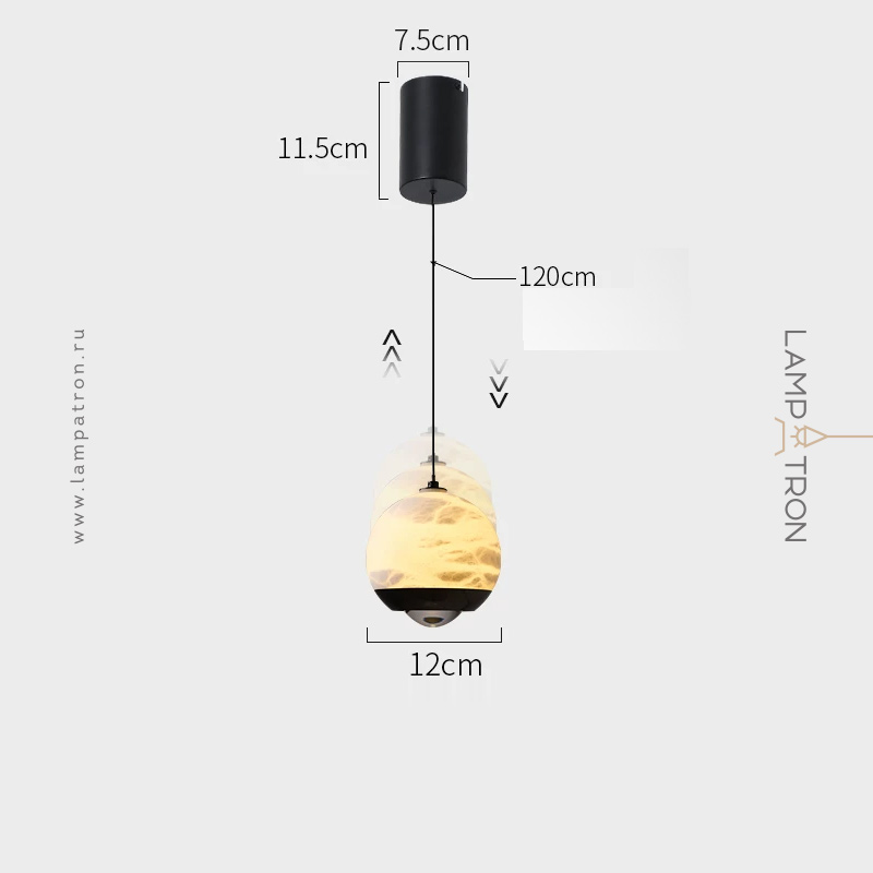 Серия подвесных светильников с шарообразным плафоном из натурального мрамора и направленным линзированным источником света