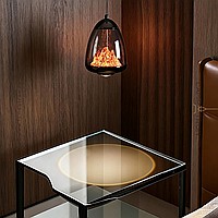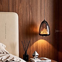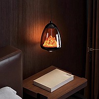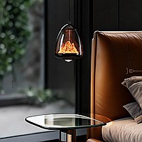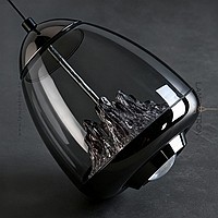 Серия подвесных светильников с направленным источником света и рельефным акриловым элементом в форме гор внутри каплевидного стеклянного плафона.