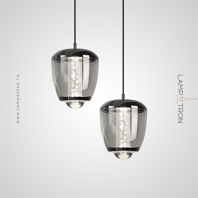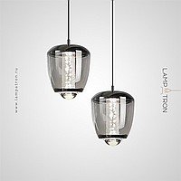 Подвесной светильник с комбинацией декоративной LED подсветки воздушных пузырьков внутри прозрачного плафона и направленного сквозь оптическую линзу света