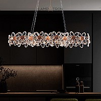 Реечный светодиодный светильник с цветочным узором из ограненного хрусталя на металлическом каркасе