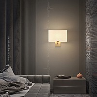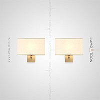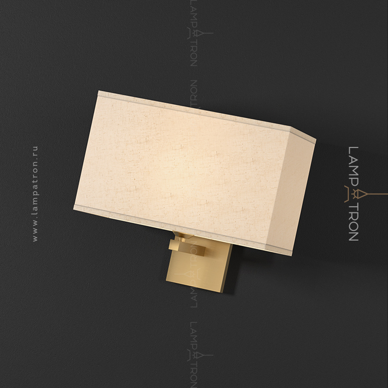 Настенный светильник с белым текстильным абажуром прямоугольной формы на латунном креплении
