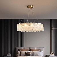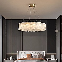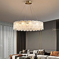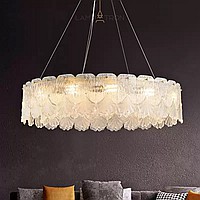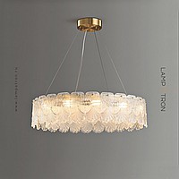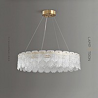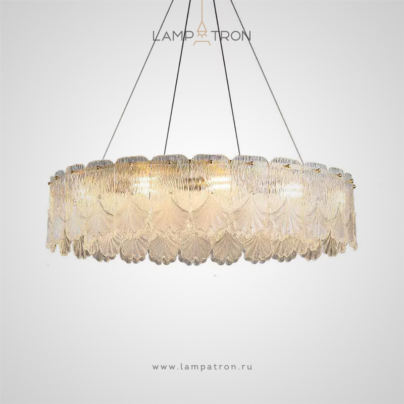 Серия люстр с рельефными стеклянными рассеивателями в форме листьев гинкго на кольцевом каркасе