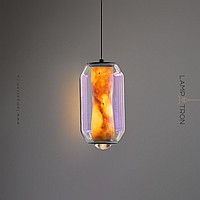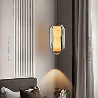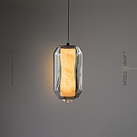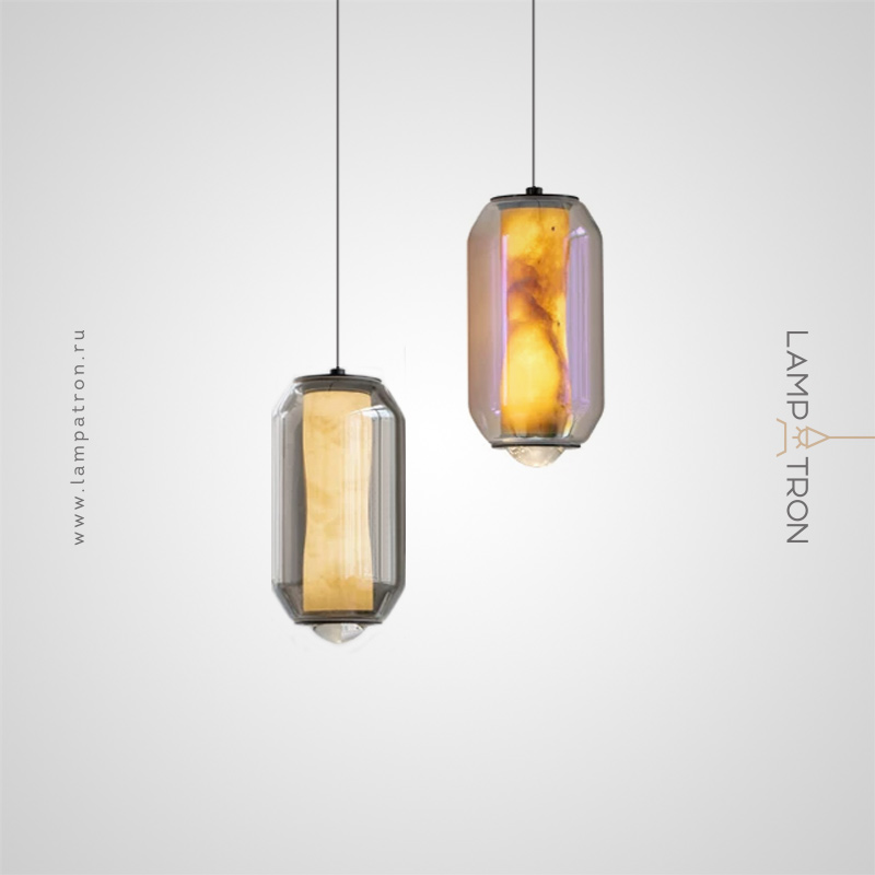 Серия подвесных светильников c тонированным стеклянным плафоном и сердечником из натурального мрамора с точечным источником света