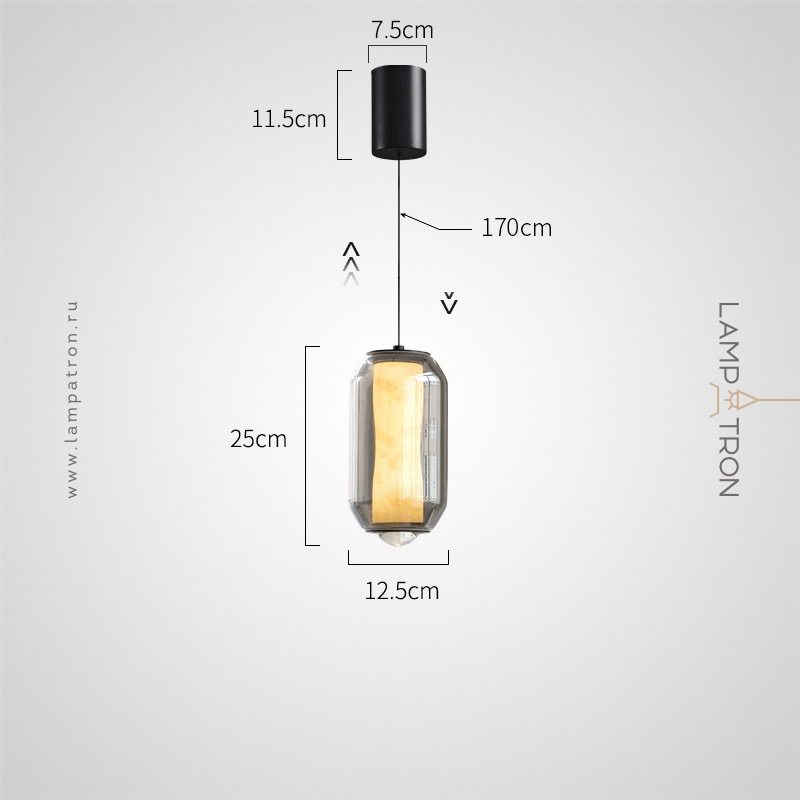 Серия подвесных светильников c тонированным стеклянным плафоном и сердечником из натурального мрамора с точечным источником света