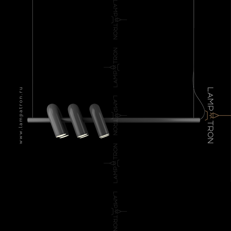 Дизайнерский светодиодный светильник с дугообразными трубчатыми плафонами на горизонтальной рейке