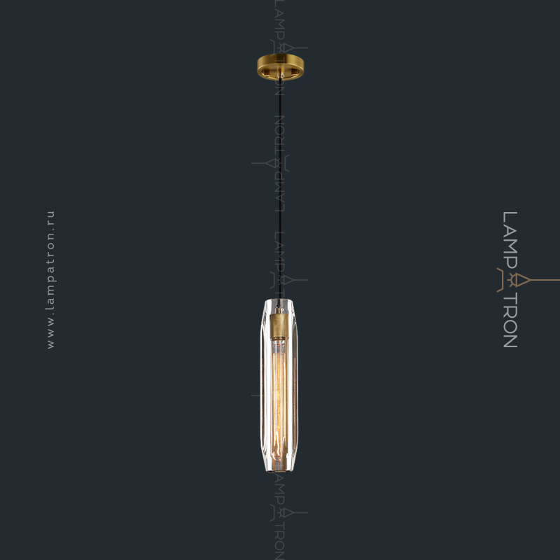 Серия подвесных светильников с цилиндрическим ограненным плафоном из прозрачного и дымчатого хрусталя