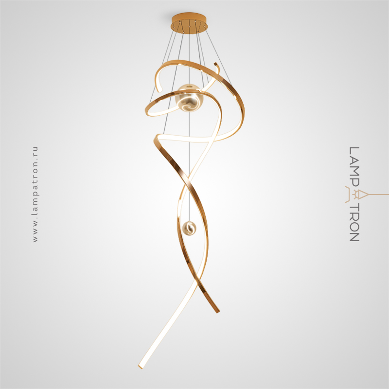 Светодиодный светильник-инсталляция со спиралевидным корпусом и шарообразными подвесами