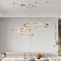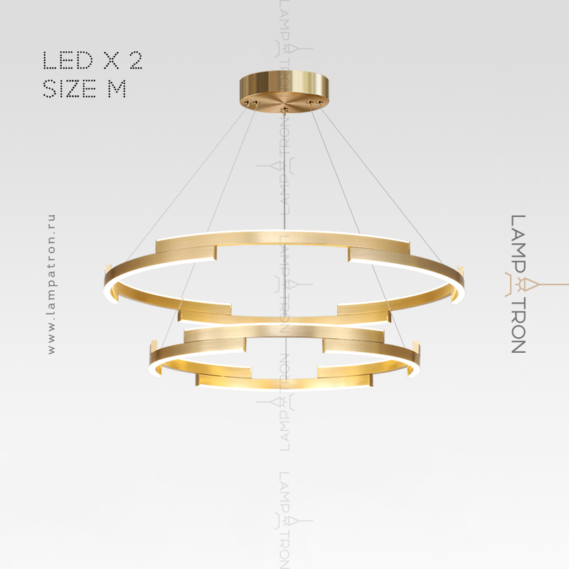 Серия светодиодных люстр в виде комбинации колец с сегментированными плафонами в форме полуколец латунного оттенка