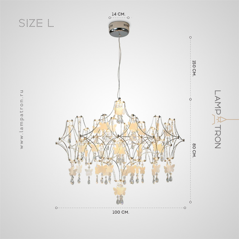 Дизайнерская хрустальная люстра с подвесами в виде бабочек и кристаллов