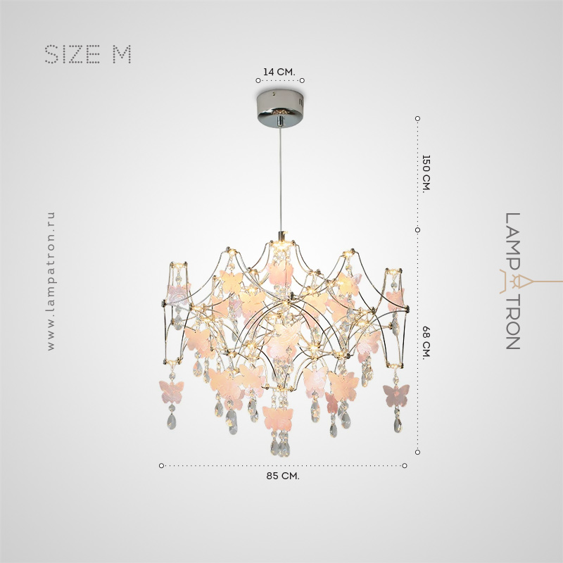 Дизайнерская хрустальная люстра с подвесами в виде бабочек и кристаллов
