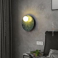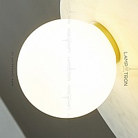 Серия настенных светильников с белым шарообразным плафоном из стекла на круглом основании из мрамора