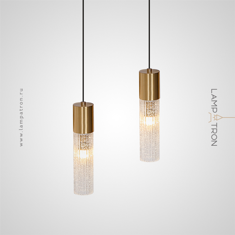 Подвесной светильник с цилиндрическим корпусом из фактурного стекла и латуни