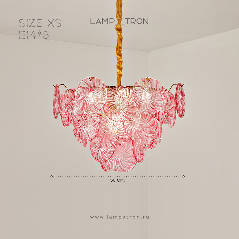 Серия люстр с подвесками из стеклянных дисков различных оттенков с дымчатым или спиралевидным узором