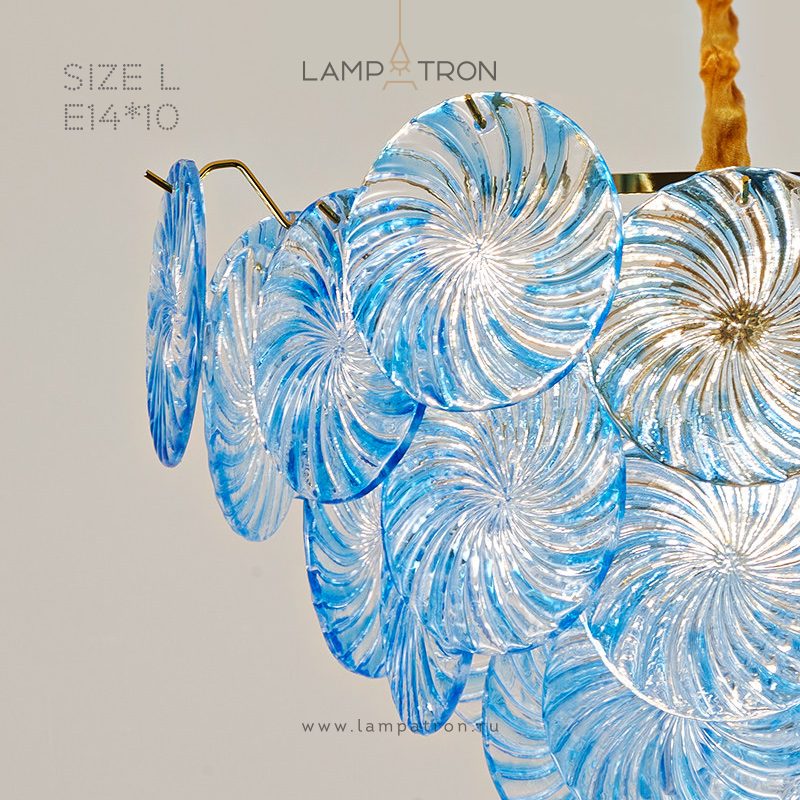 Серия люстр с подвесками из стеклянных дисков различных оттенков с дымчатым или спиралевидным узором