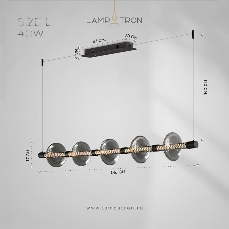 Серия реечных светильников в виде светодиодной трубки с сетчатым рассеивателем и фигурным плафоном из дымчатого стекла
