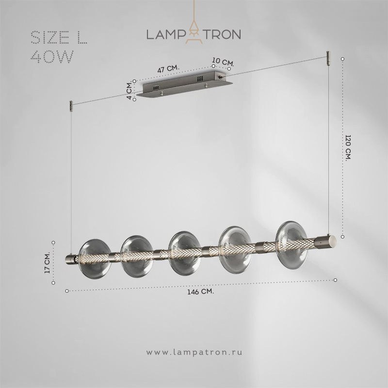 Реечный, рядный светильник GARVIN Хром. Размер L (Плавная регулировка)