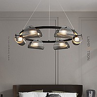 Серия кольцевых светодиодных люстр с изогнутыми рельефными рассеивателями из дымчатого стекла