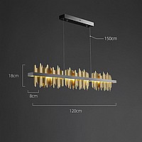 Светодиодный реечный светильник на струнном подвесе с латунными изогнутыми рассеивателями оригинальной формы