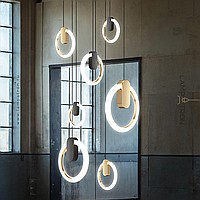Серия подвесных светодиодных светильников с отделкой в цвете латунь по внутреннему контуру кольцевидного плафона