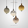 Серия светильников с точечным источником света и вращающимся стеклянным рассеивателем в форме рельефного шара.
