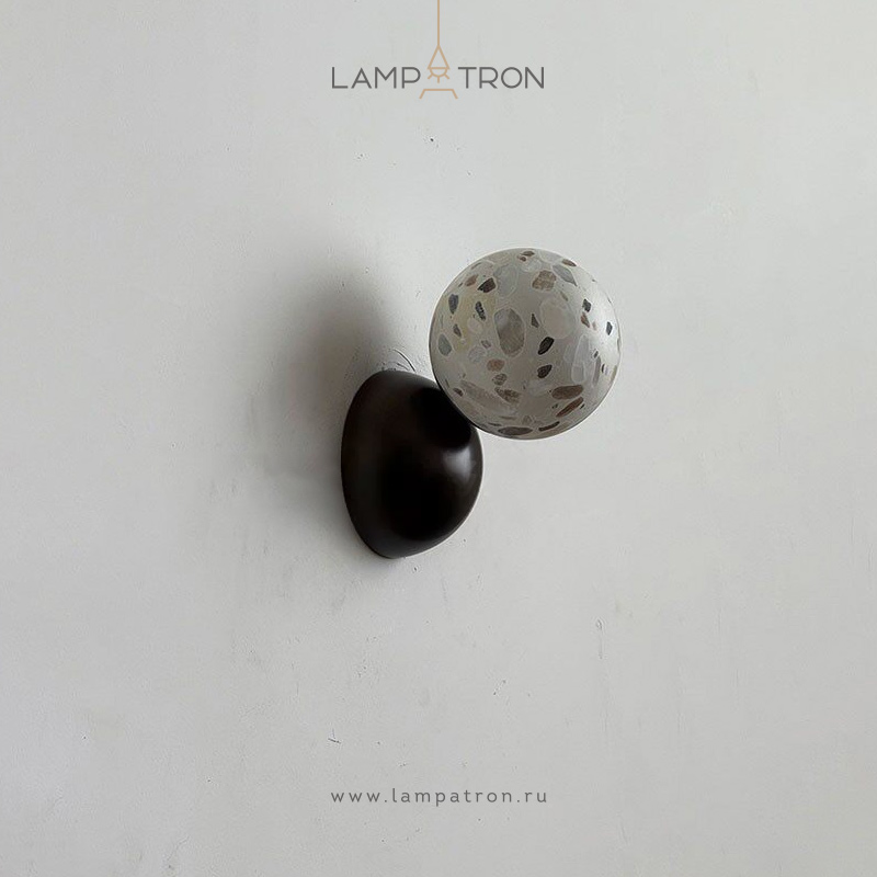 Серия настенных светильников с шарообразным каменным плафоном на металлическом основании в виде полусферы