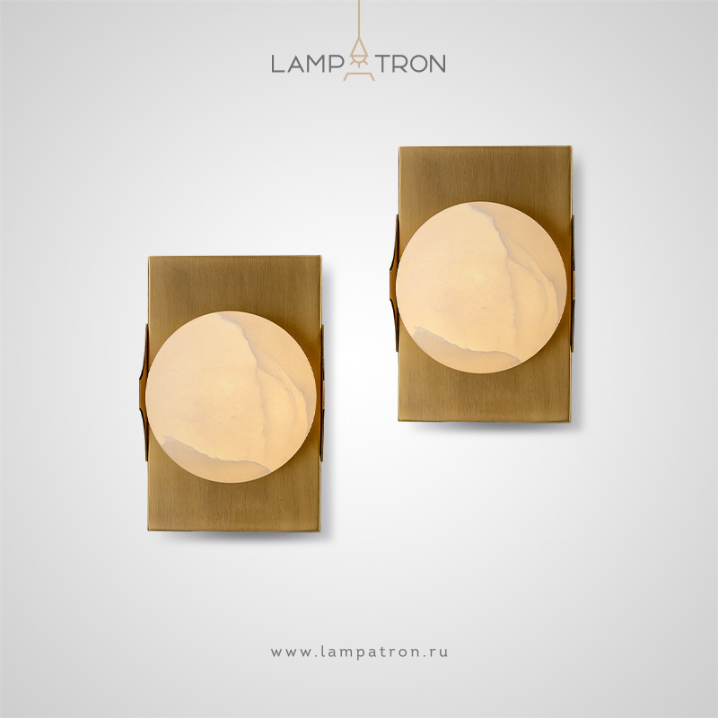 Настенный светильник с шарообразным плафоном из натурального мрамора на прямоугольном основании
