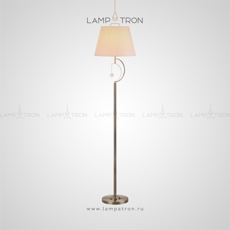 Торшер с текстильным плафоном и декоративной подвеской в виде куба