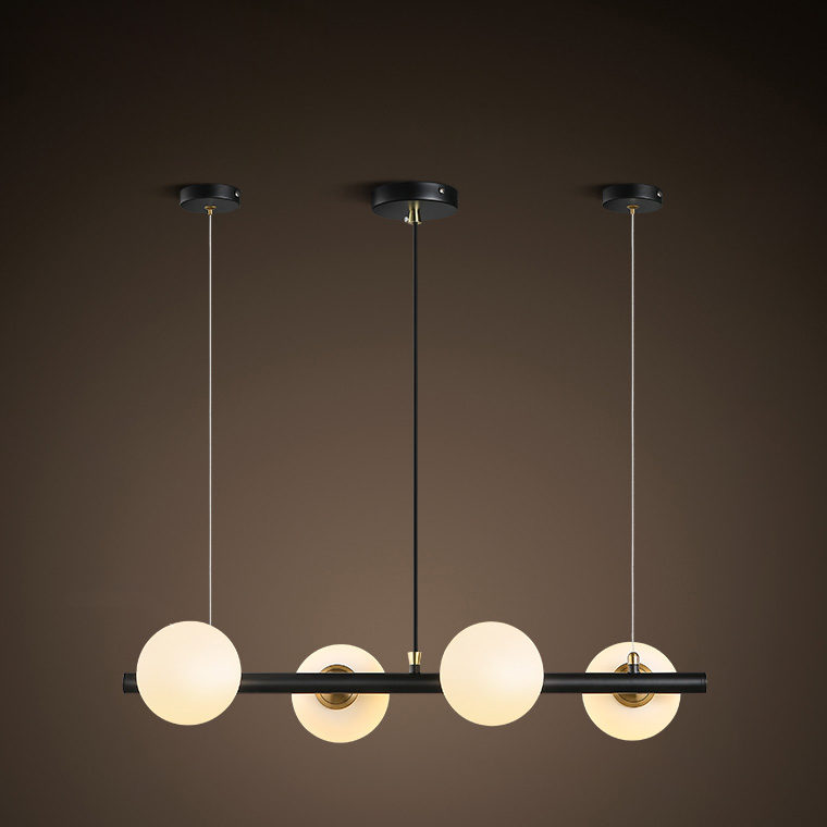 Реечный светильник в скандинавском стиле со стеклянными шаровыми плафонами