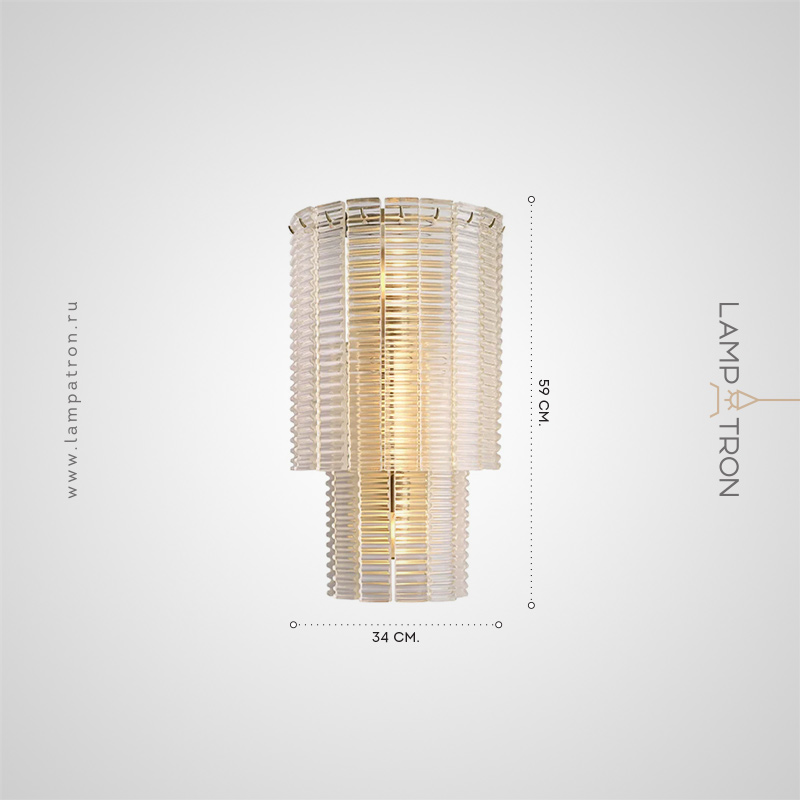 Бра с двуярусным абажуром в виде удлиненных прямоугольных подвесок из рифленого стекла ручной работы