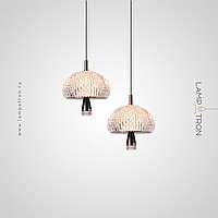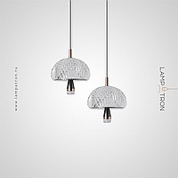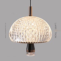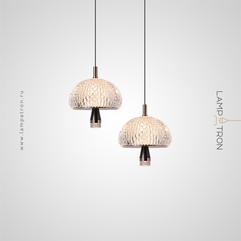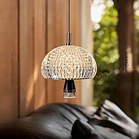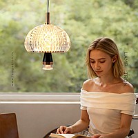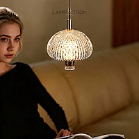 Подвесной светильник с плафоном в форме усеченной сферы из рельефного акрила и направленным точечным источником света