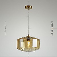 Подвесной светильник из цветного стекла в форме усеченного цилиндра с рельефным рисунком