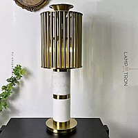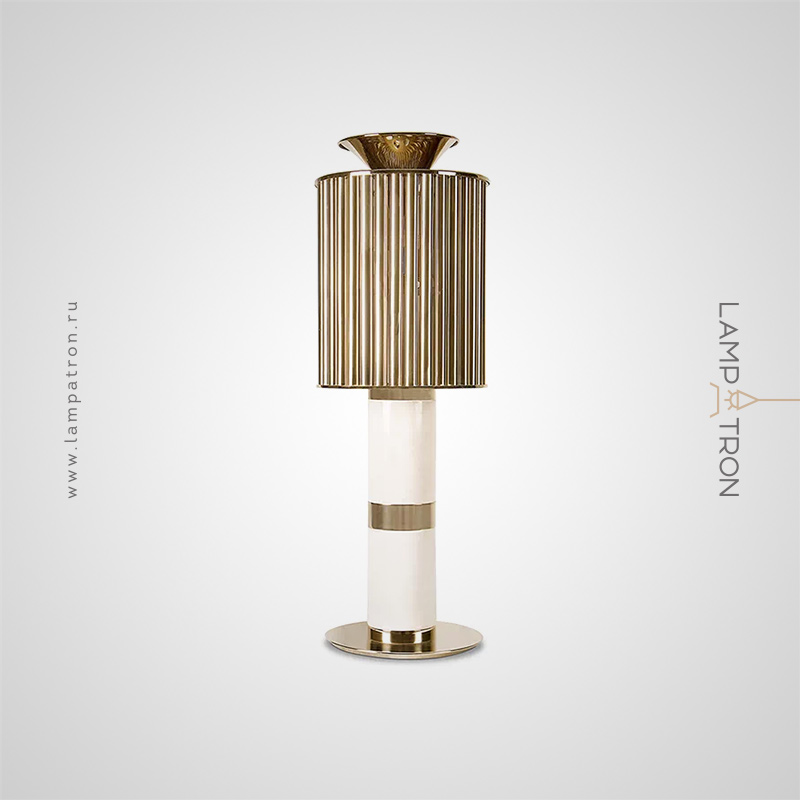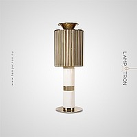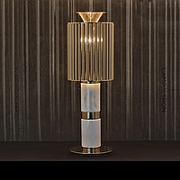 Настольная лампа с рифленым абажуром на цилиндрической стойке из натурального мрамора