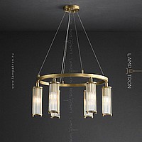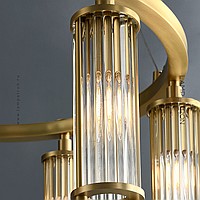 Серия люстр с цилиндрическими плафонами из стеклянных стержней на латунном кольцевом корпусе
