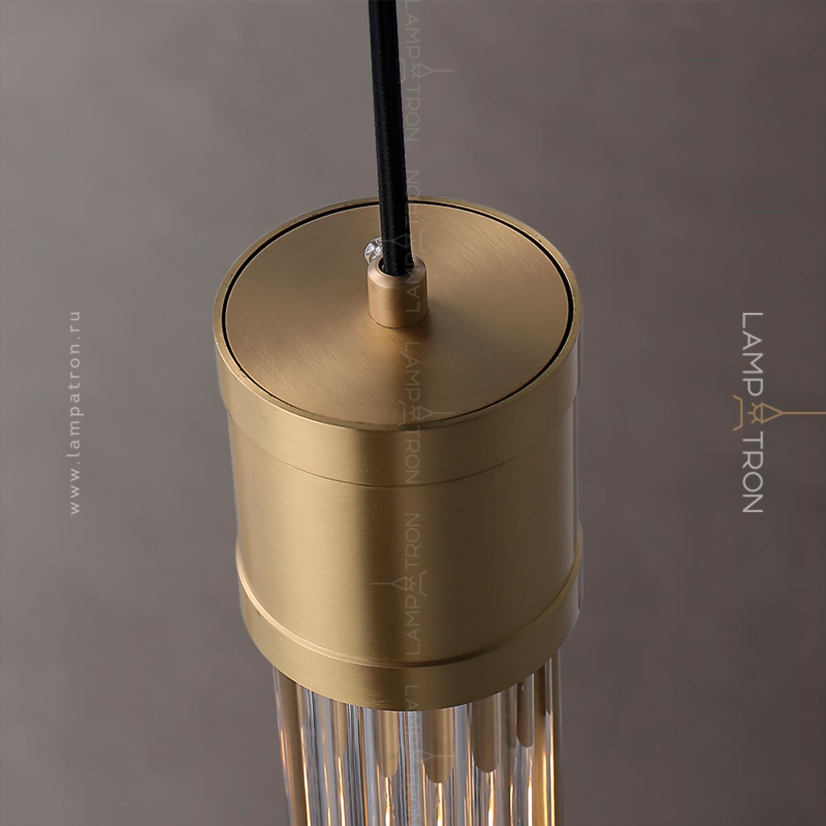 Подвесной светильник с цилиндрическим плафоном из стеклянных стержней в бронзовой оправе