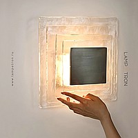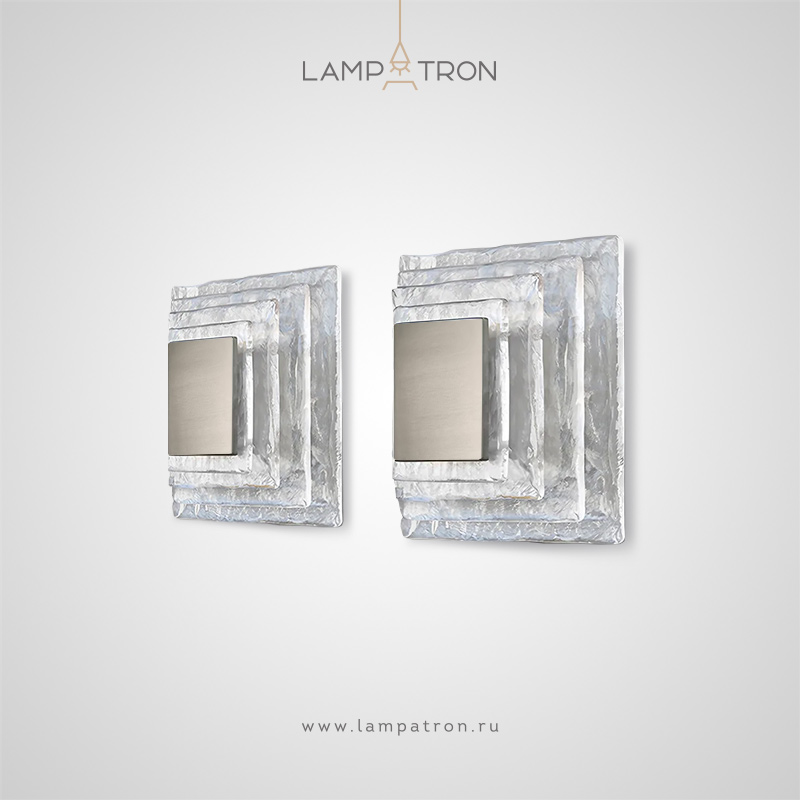 Настенный светильник с квадратным плафоном из рельефных стеклянных пластин ручной работы