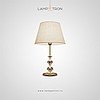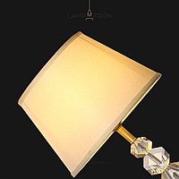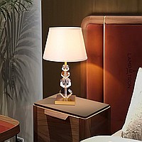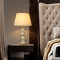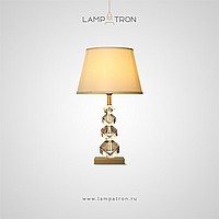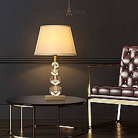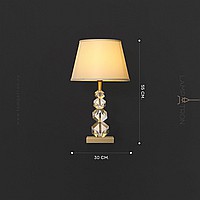 Настольная лампа с текстильным абажуром на вертикальной стойке в виде пирамиды из хрустальных кристаллов