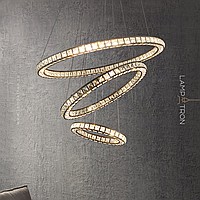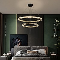 Серия светодиодных люстр в виде комбинации колец разного диаметра с прямоугольными рассеивателями из хрусталя