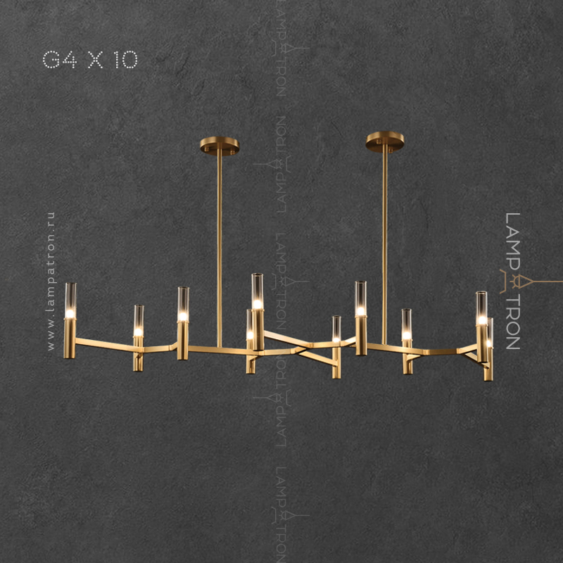 Серия реечных светильников со стеклянными плафонами цилиндрической формы на разветвленном каркасе